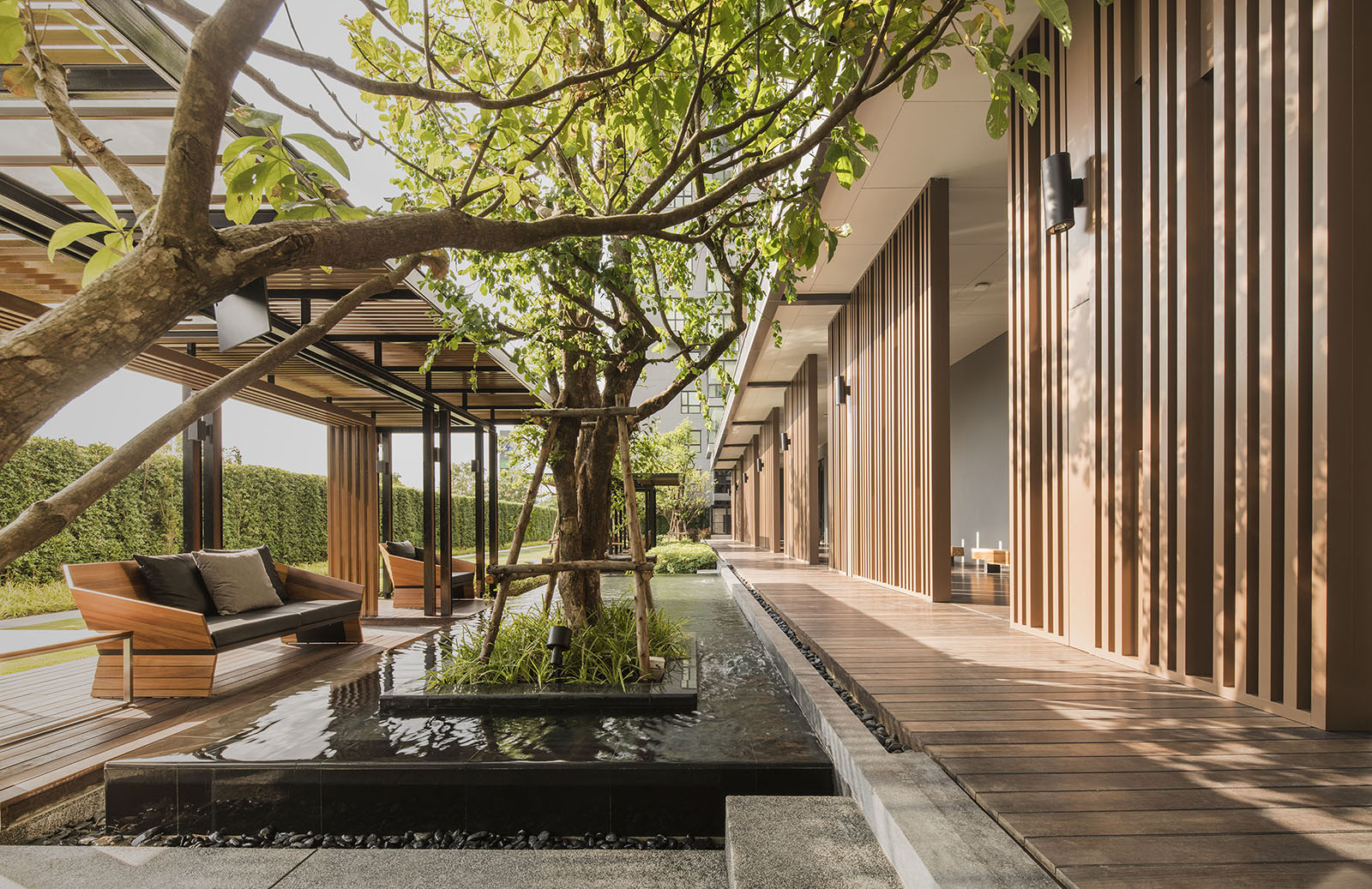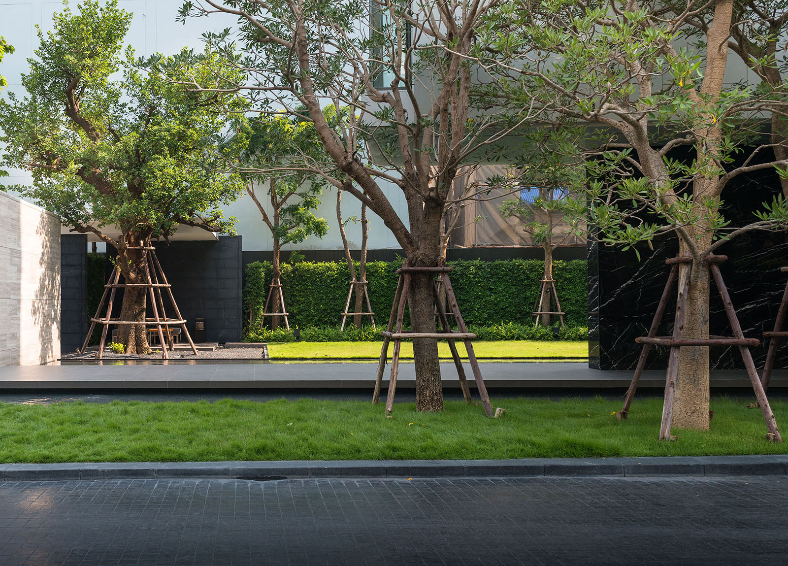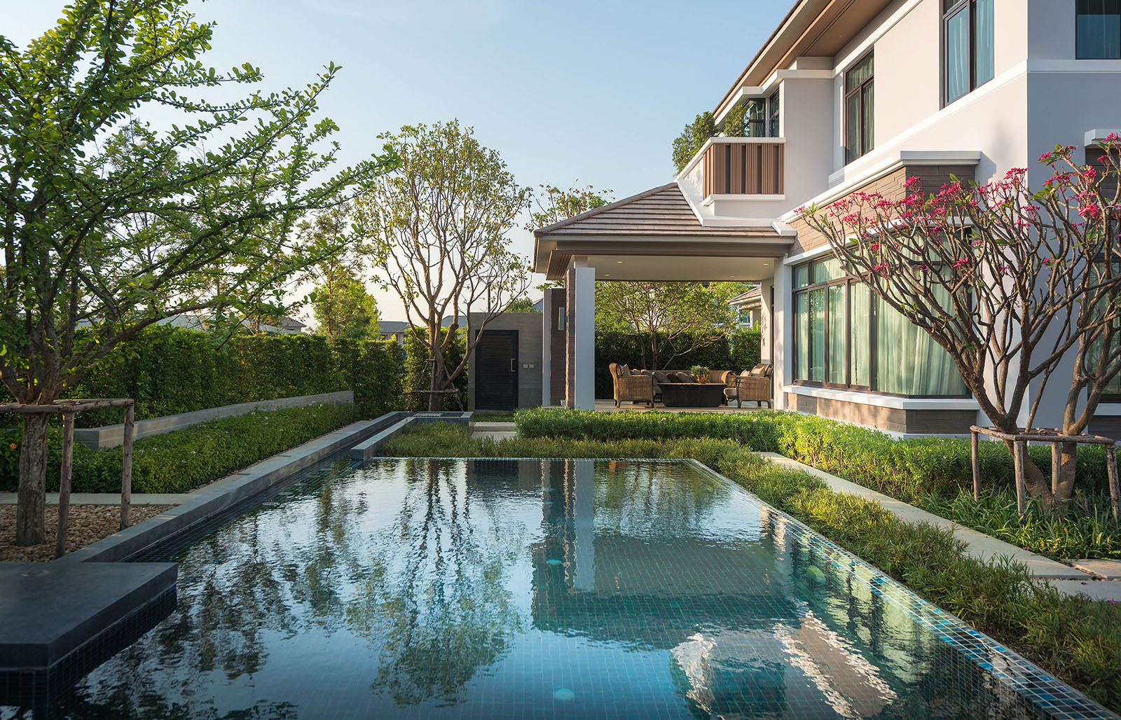 景觀設(shè)計(jì)時(shí)我司專門組織設(shè)計(jì)是遠(yuǎn)赴新加坡游學(xué),深入理解晉合集團(tuán)開發(fā)理念,將新加坡的特別濃郁的度假式的景觀思維與傳統(tǒng)的蘇州園林的文化意蘊(yùn)相結(jié)合,并且在在公共區(qū)域之外,別墅庭院采用統(tǒng)一風(fēng)格韻味下不同的針對性、定制型設(shè)計(jì),最后表現(xiàn)出來的即是晉園別墅這種極具具有東方詩意、度假風(fēng)情的稀缺純墅區(qū)景觀。景觀領(lǐng)域的成功,大大增強(qiáng)了別墅本身的價(jià)值,也是后來墅區(qū)受惠于金雞湖版塊之外產(chǎn)生極高溢價(jià)的另一重原因。