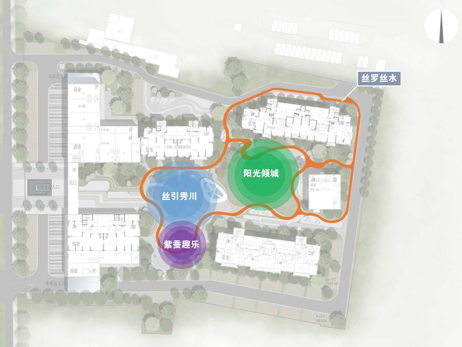 陽(yáng)光傾城,傾倒于陽(yáng)光尚品的純雅靜美;絲引秀川,引導(dǎo)業(yè)主走出居室,享受生態(tài)自然與健康人文的交融