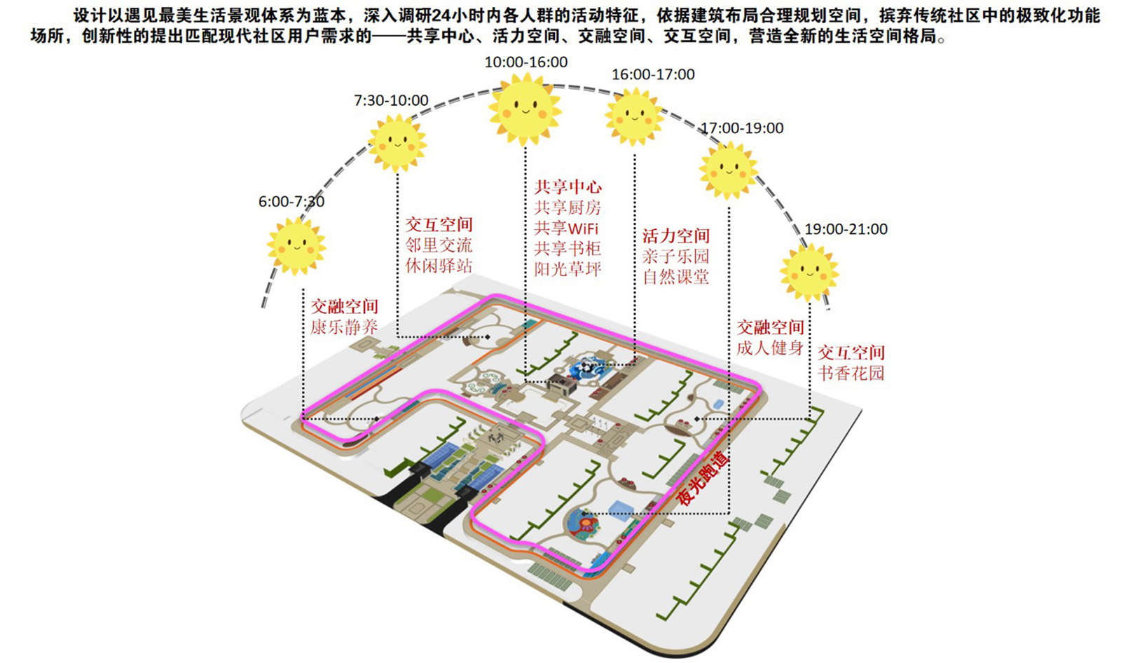 豐富的健身器械,成人在同一時間段將大量集中,形成共同參與的交融場所,創造更多社區業主自發交流的可能性,